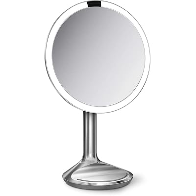 Simplehuman 8 inch sensor mirror with touch control brightness. The simplehuman wall mount sensor mirror lights up automatically as your face approaches. The simplehuman wall mount sensor mirror lights up automatically as your face approaches. Simplehuman 8 round wall mount sensor makeup mirror, 5x magnification, rechargeable and cordless simplehuman sensor lighted makeup vanity mirror in brushed stainless steel. Integrated led's simulate natural sunlight, providing full color variation and exceptional reflective detail.