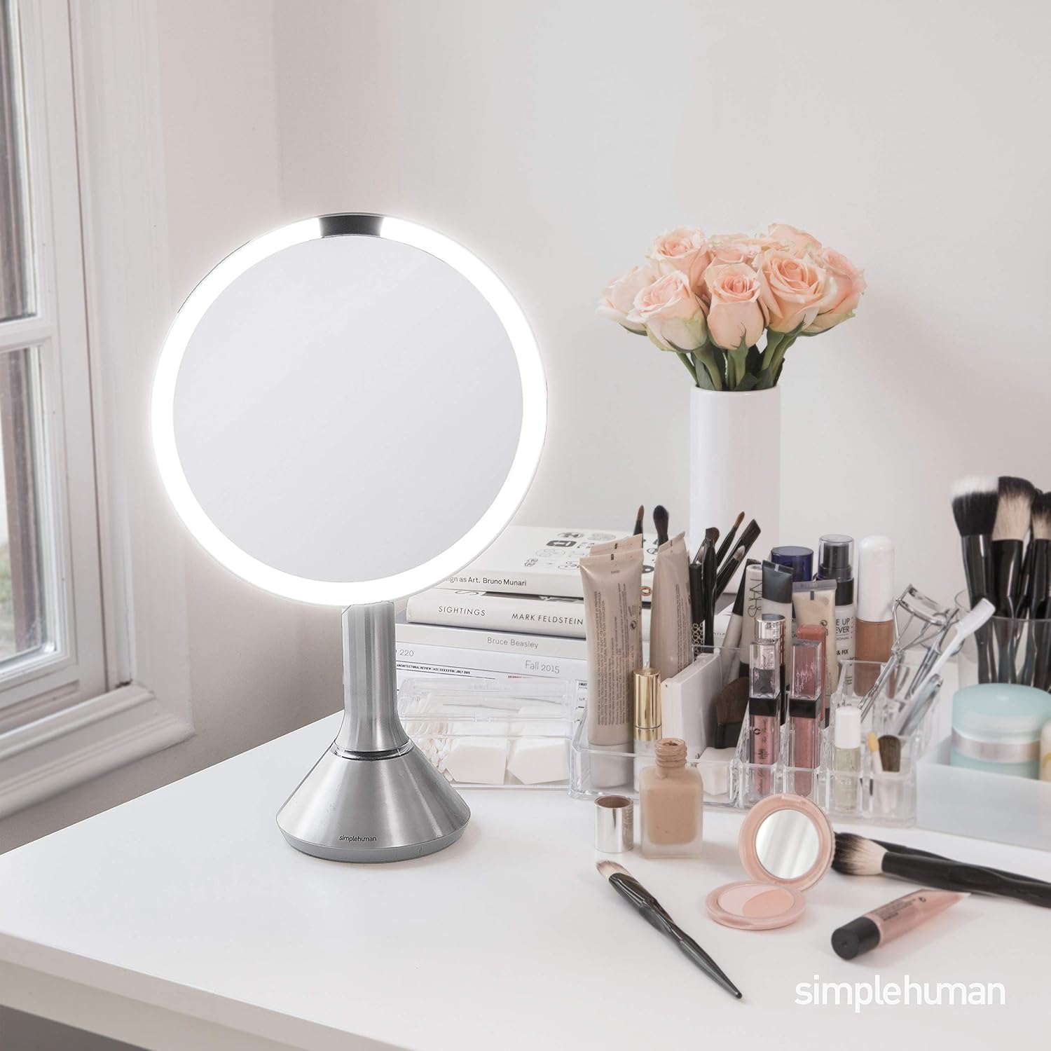 Best vanity lights for makeup? The wall mounted lighted mirrors are special and loved by every fashionista because they can be swiveled to different angles and save you a ton of space (they don't take up any space on your vanity or makeup table). Simplehuman 8 inch sensor mirror with touch control brightness. Simplehuman mirror often contain additional features such as bulbs studded around the edge or led lighting and enhance visibility while adding a stylistic element. Integrated led's simulate natural sunlight, providing full color variation and exceptional reflective detail.